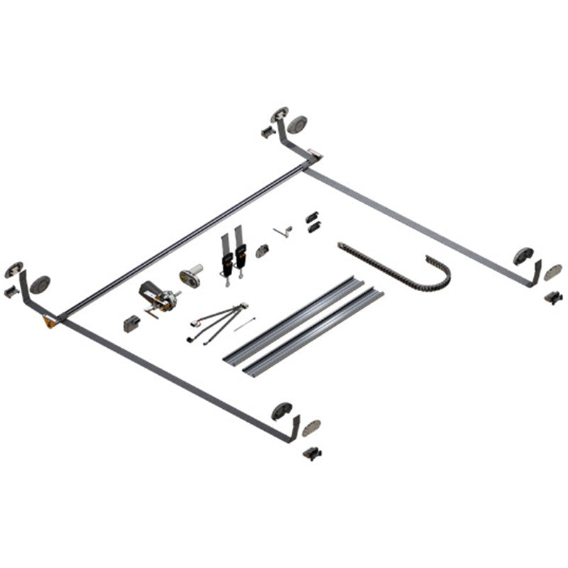 Lippert smart bed system is engineered to lift and / or lower in the rear garage, above the dinette, or driver’s seat. High-performing gear motor with optional integrated encoder. The device fits completely under the bed frame and offers maximum fitting flexibility. Complete bed lifting system is ready for installation (comes with or without the bed frame). Includes manual emergency system.Heavy-duty steel and aluminum construction The system is made up of tree parts : The system is made up of tree parts : The smart bed frame, the elctric bed lifting system and the fixing brackets
